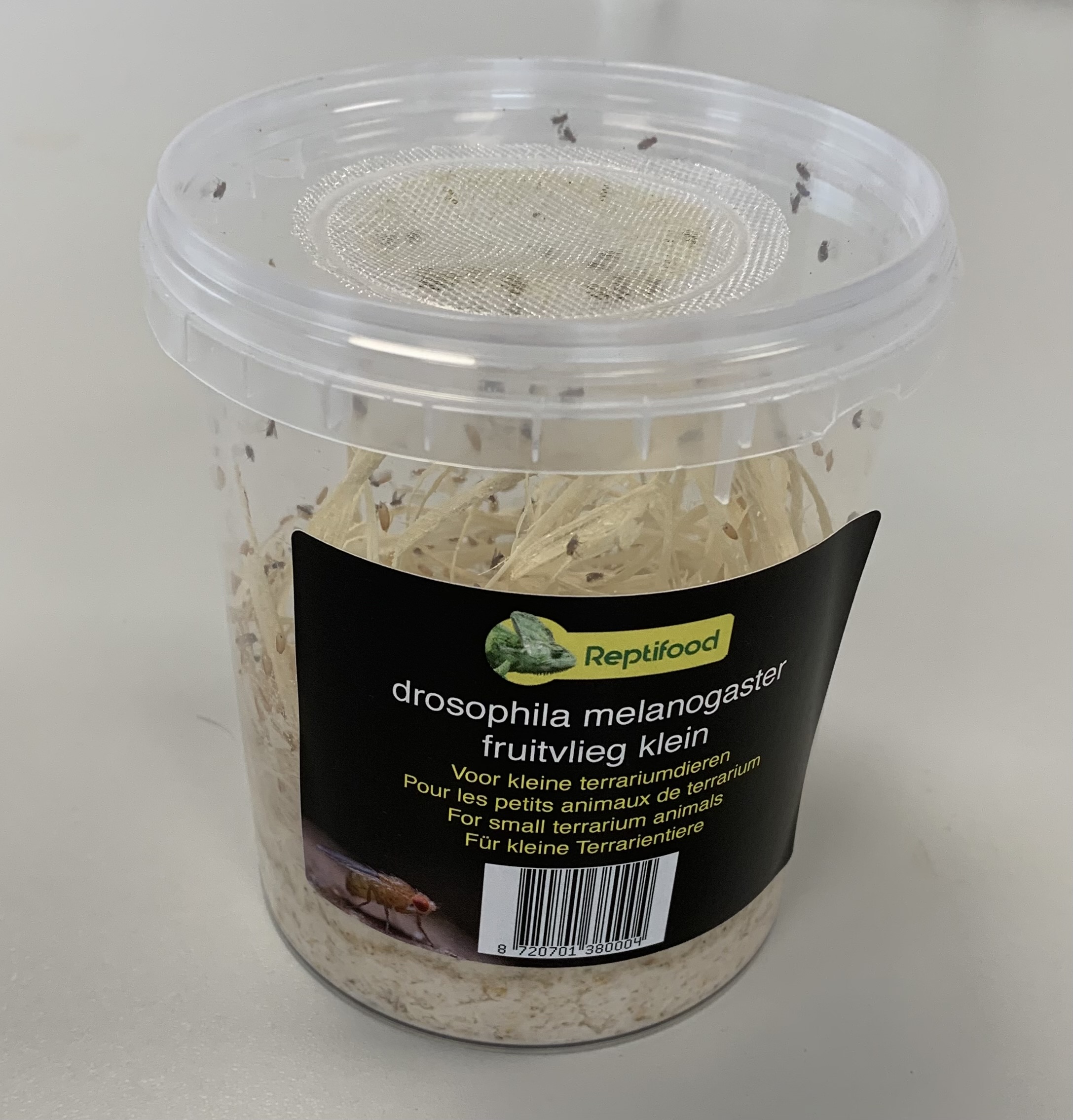 Our fruit flies are bred in such a way that they cannot fly, making them an ideal food animal for fish, small offspring of young spiders and small terrarium / paludarium animals. It is an ideal staple food for poison frogs, small lizard species, praying mantises, ants and many other small reptiles and amphibians.