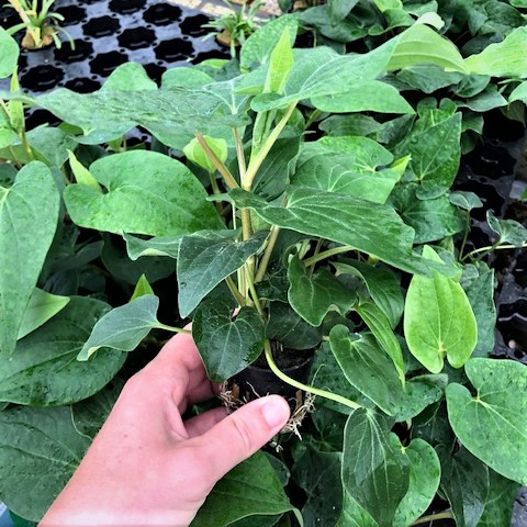 "This plant will become very large when above water. We supply this plant as a compact plant grown above water. Under water you can keep the plant small by using its shoots that it forms under the soil. Every time a small baby plant will appear. A small plant produces little babies and a large plant produces large babies. It is an old-fashioned plant that we like to keep in the assortment at the right size. "